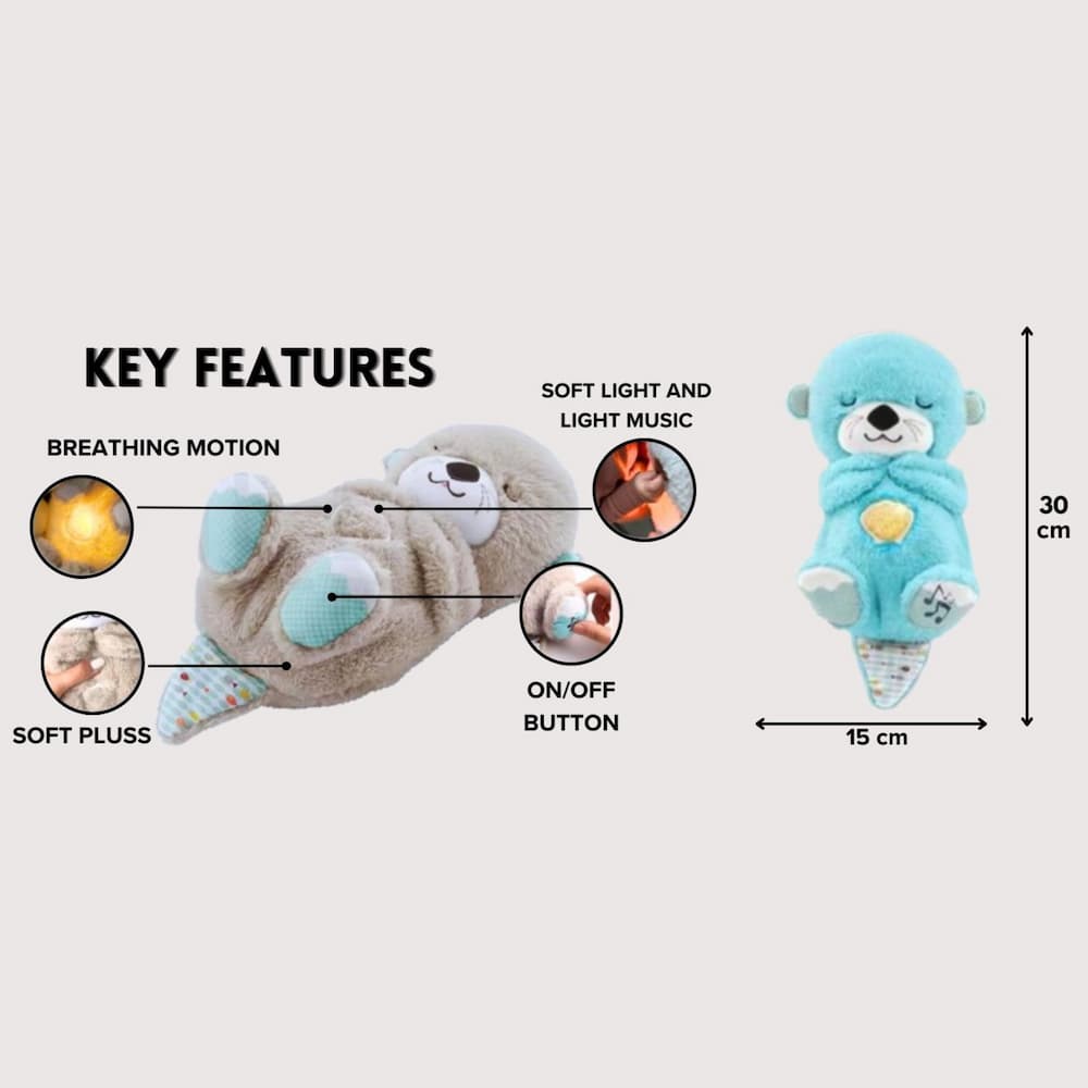 Breathing Otter Plush Toy offers realistic breathing rhythms, gentle music, and soft lighting to comfort and soothe babies and toddlers for better sleep.